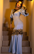 The Marina dress is a tight fitted dress with moderate bead embroidery and modest design which makes it wearable at any occasion and by anyone. This dress will look stunning on any body shape WITH the Shapewear. The main focus of this dress is the embellishment so that any imperfect curves of the body is less noticeable!